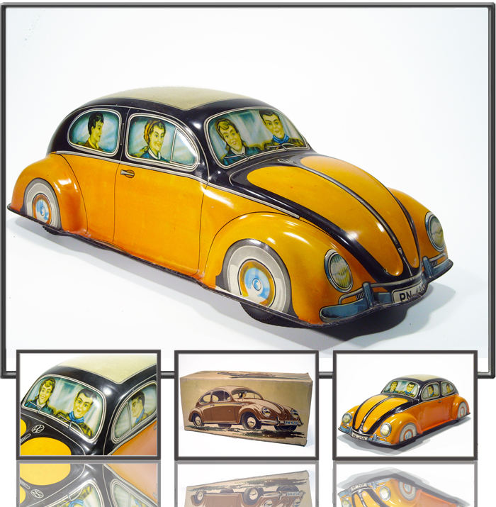 VW Beetle made by P.Niedermeijer, Western Germany, 1960th Split window VW beetle with family inside Friction. 410mm.Z-2 With part of the original box |